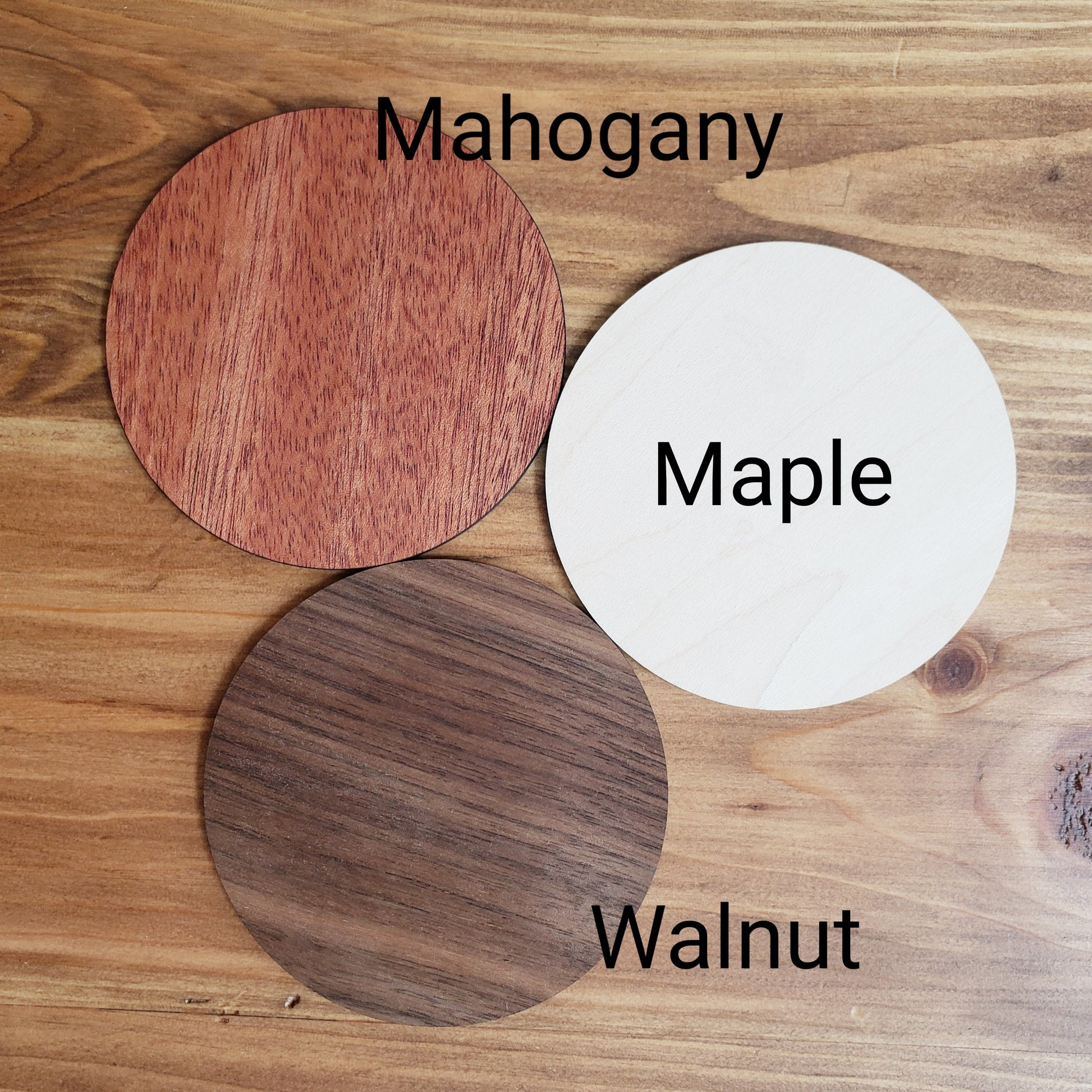 - Choose from the following stain options for the main layer: Maple, Walnut, Mahogany plywood. Ornament comes tied with ribbon so it is ready to be hung on your Christmas tree straight out of the package.