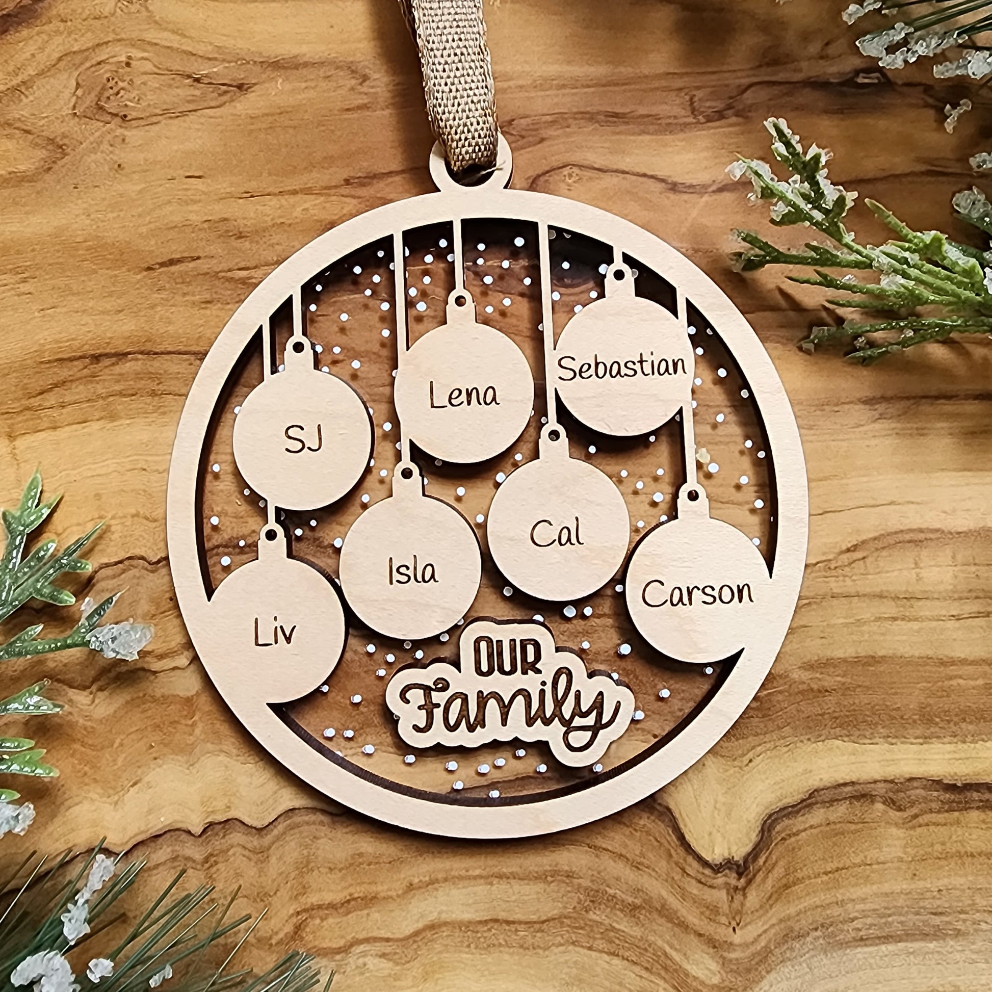 - Ornament that can hold 8 - 10 family members names is approximately 4.25" in diameter.